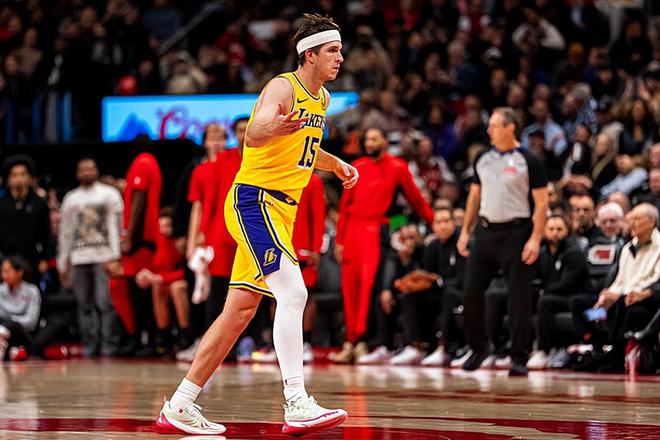 本场比赛中,湖人的先发后场球星奥斯汀-里夫斯(Austin Reaves)又一次爆砍高分,将自己在进攻端的实力完全发挥了出来。里夫斯全场出场40分48秒,投篮21中13,三分线外11中5,罚球15中13,得到了全场最高分44分外加5篮板10助攻的两双数据,还有5次失误和3次犯规,正负值为+6。在东契奇缺阵的情况下,里夫斯得到了大量的球权和大量的出手机会,他也是将自己各方面的才能都发挥了出来。里夫斯不仅突破犀利,杀伤力惊人,而且外线投篮稳定性也是保持在一个极高的水准。里夫斯在传球和组织方面也同样起到了决定性的作用。里夫斯可以说是完全接替了东契奇的角色,在场上将自己各方面的实力都发挥了出来。要不是有里夫斯这样的爆发式表现,湖人可能也未必会战胜实力不俗的对手。